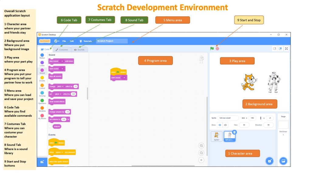 Scratch is a graphical programming tool developed by MIT for young children learning. You can directly run the application in web https://scratch.mit.edu/projects/editor/?tutorial=getStarted. Or download to run in PC. https://scratch.mit.edu/download