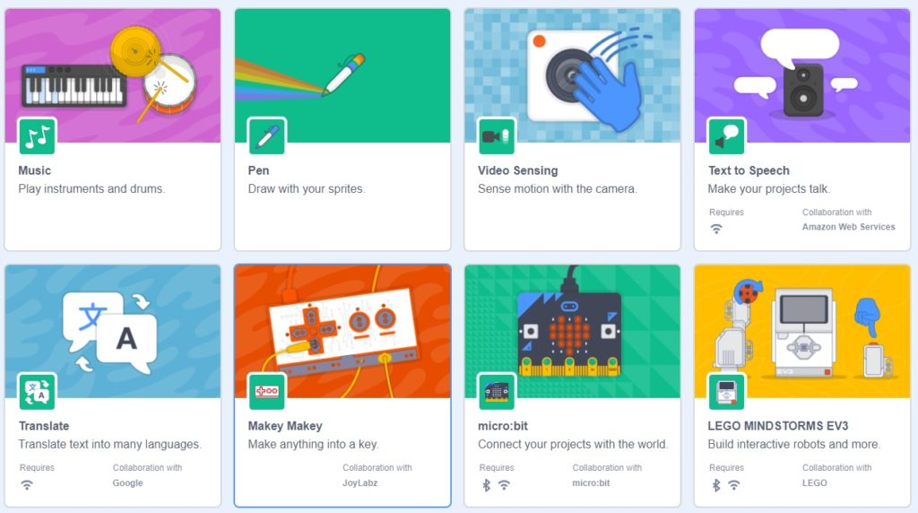 There are more extensions to make music, drawing, webcam action, Text to Speech, Translation and so on.